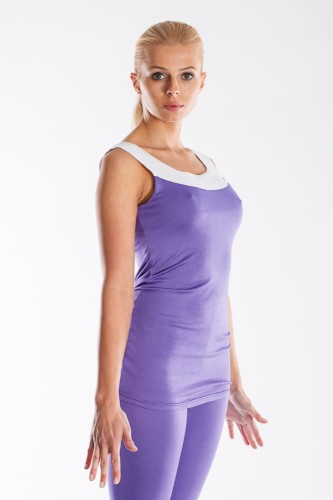 KOSZULKA LUNA MECH SADRA dedykowana do praktykowania jogi i innych aktywności fizycznych. Została wykonana z bawełny (92%) z domieszką wiskozy (8%). Koszulka jest w kolorze fioletowym z białym wykończeniem w okolicy kołnierzyka. Posiada wszyty biustonosz sportowy. Dostępna w rozmiarach S, M i L.