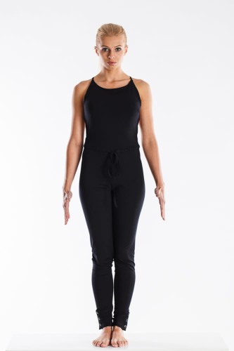 KOMBINEZON LUNA MECH MIZAR do jogi powstał z myślą zapewnienia komfortu podczas praktykowania jogi i medytacji. Podczas projektowania zastosowano niebanalne podejście do tematyki związanej ze swobodą ruchu. Wyprodukowany z bawełny organicznej 96% i wiskozy 4%. Pełen wdzięku kombinezon posiada również wszyty biustonosz sportowy. Cały strój podkreśla piękno kobiecych kształtów dzięki unikalnemu krojowi. Dostępny w rozmiarach S, M i L. Kolor czarny